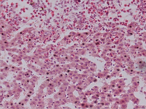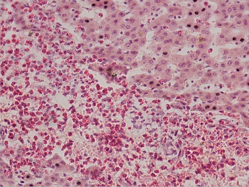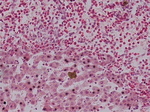 蛔虫性肝硬变2(肝小叶间有大量哮酸性粒细胞)