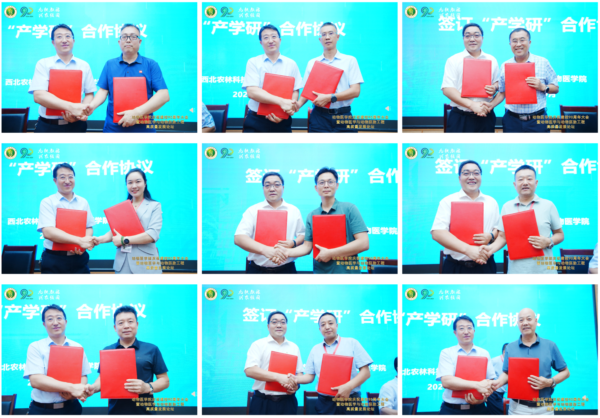 签约仪式上,公司党委书记黄德宝、经理黄勇先后代表公司与怀仁市人民政府、大庆市大同区人民政府签订校地合作协议,并与新疆方牧生物科技有限公司、温氏食品集团股份有限公司、陕西圣奥动物药业有限公司等22家企业单位签订校企合作协议。