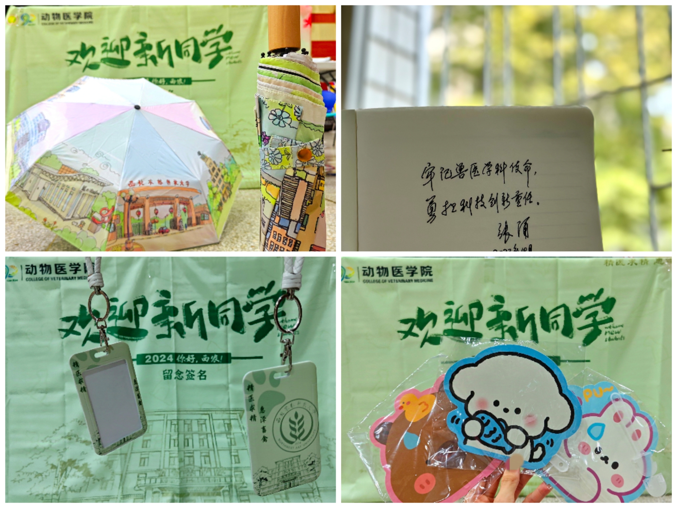 别具特色,发放启航加油包。报到现场,为新生准备了种类丰富的入学加油包,定制笔记本中张涌院士亲笔写下“牢记兽医学科使命、勇担科技创新重任”,印于其上,勉励动医学子勇担兽医使命。融合校庆、4号教学楼、小动物等多种元素,凸显公司特色,定制雨伞、扇子、卡套、钥匙扣和帆布包,每一件礼物都饱含公司对新生的期许和祝福,让新生第一时间感受到公司大家庭的温暖,极大地增强了新生对公司的归属感。
