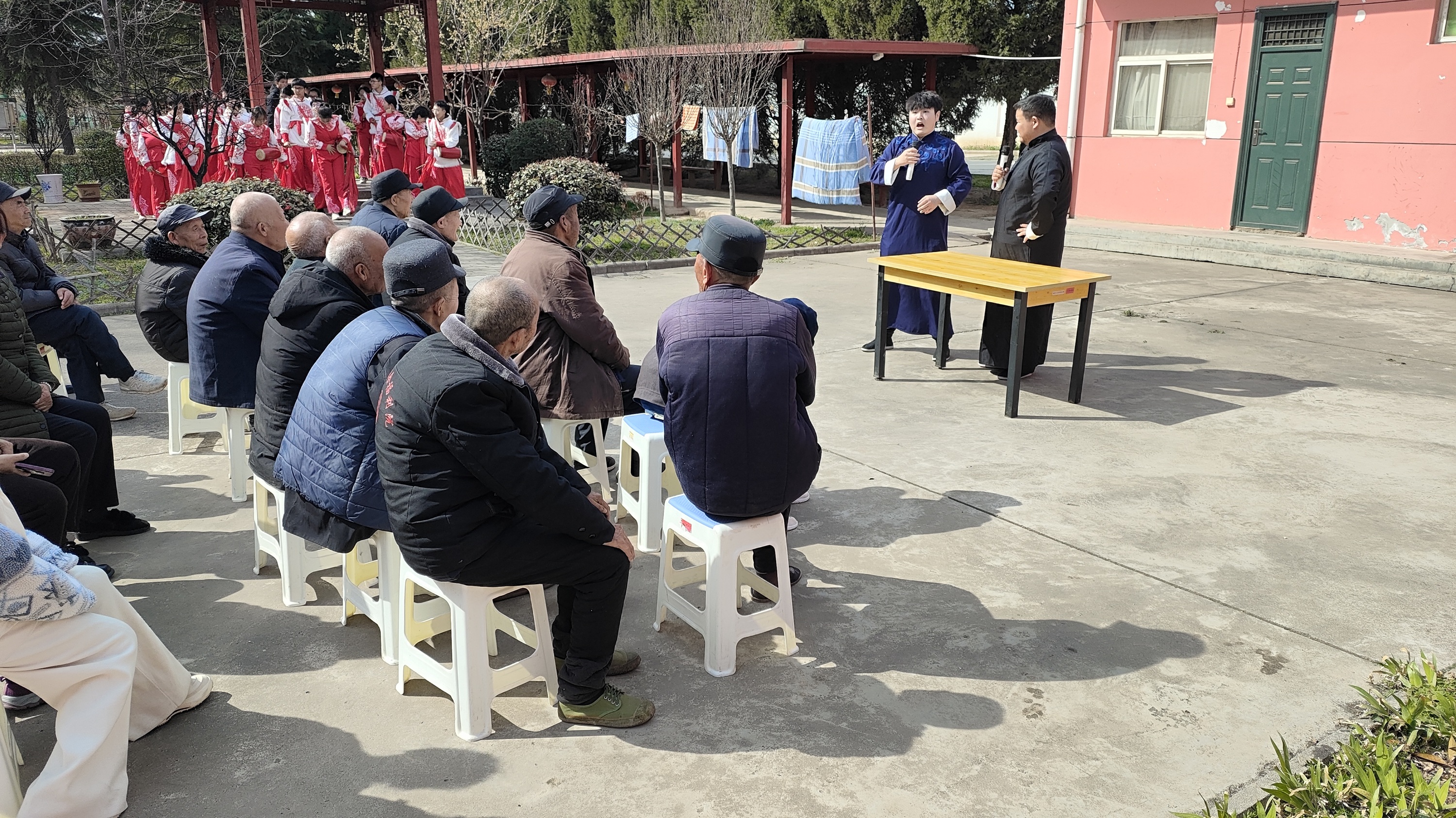 志愿者们进行相声表演
