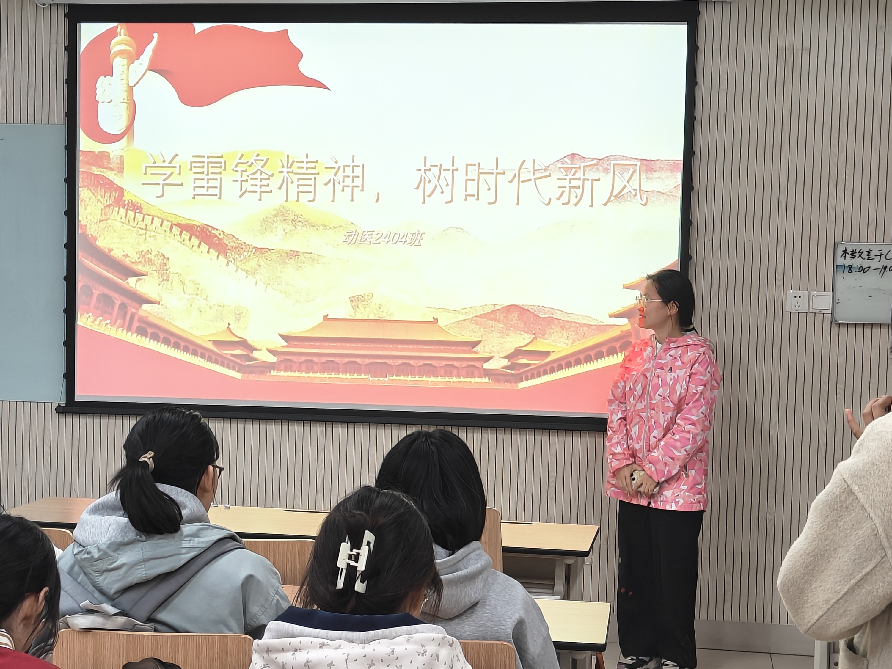为弘扬雷锋精神,培育新时代青年责任担当,best365中国官网动物医学专业2404班于近日在N8214教室举办"学习雷锋主题分享活动"。通过影视作品赏析、感悟交流与实践故事分享,班级员工将共同感悟雷锋精神内涵,传递奉献的力量。
