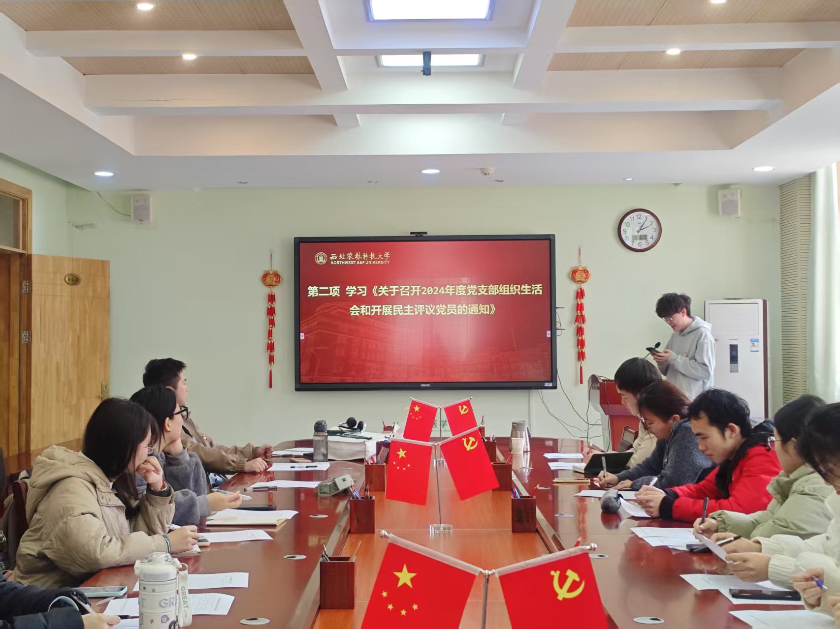 会议开始,全体党支部成员集中学习了关于《中共中央 国务院关于进一步深化农村改革,扎实推进乡村全面振兴的意见》。文件指出当前国内农业环境虽然和谐稳定,但国际上仍然处于复杂严峻的状况,我国面对的不确定突发因素也逐渐增多,这一表现更加要求夯实“三农”工作,做到全面、坚定、稳定地应对风险挑战,提高农村治理水平和生活质量,从而推动农村的工作生活发展。紧接着全体成员对黄思光书记、吴普特董事长在2025年公司工作会议上的讲话进行了学习,明确了公司的发展战略和目标,如“双一流”建设、乡村振兴等,激励成员为公司发展贡献自己的力量。会议第二部分,全体成员进行学习《关于召开2024年度党支部组织生活会和开展民主评议党员的通知》的相关内容。随后党支部书记王凤进老师代表支部委员会向党员大会述职。王凤进老师强调,党支部成员之间的联系要紧密,团支部活动应该更加丰富和多元化,党支部成员的自我批评应该更加全面,下一年应对于政治理论学习更加深入。在党支部书记的带领下,全体成员开展民主评议党员与自我批评环节,每个成员深刻的讨论了自我工作上的不足方向,并且对于未来的工作进行预期和考究,对比工作的不足方面要进行反省和改正,做好本职工作,努力的为公司建设贡献自己的力量。