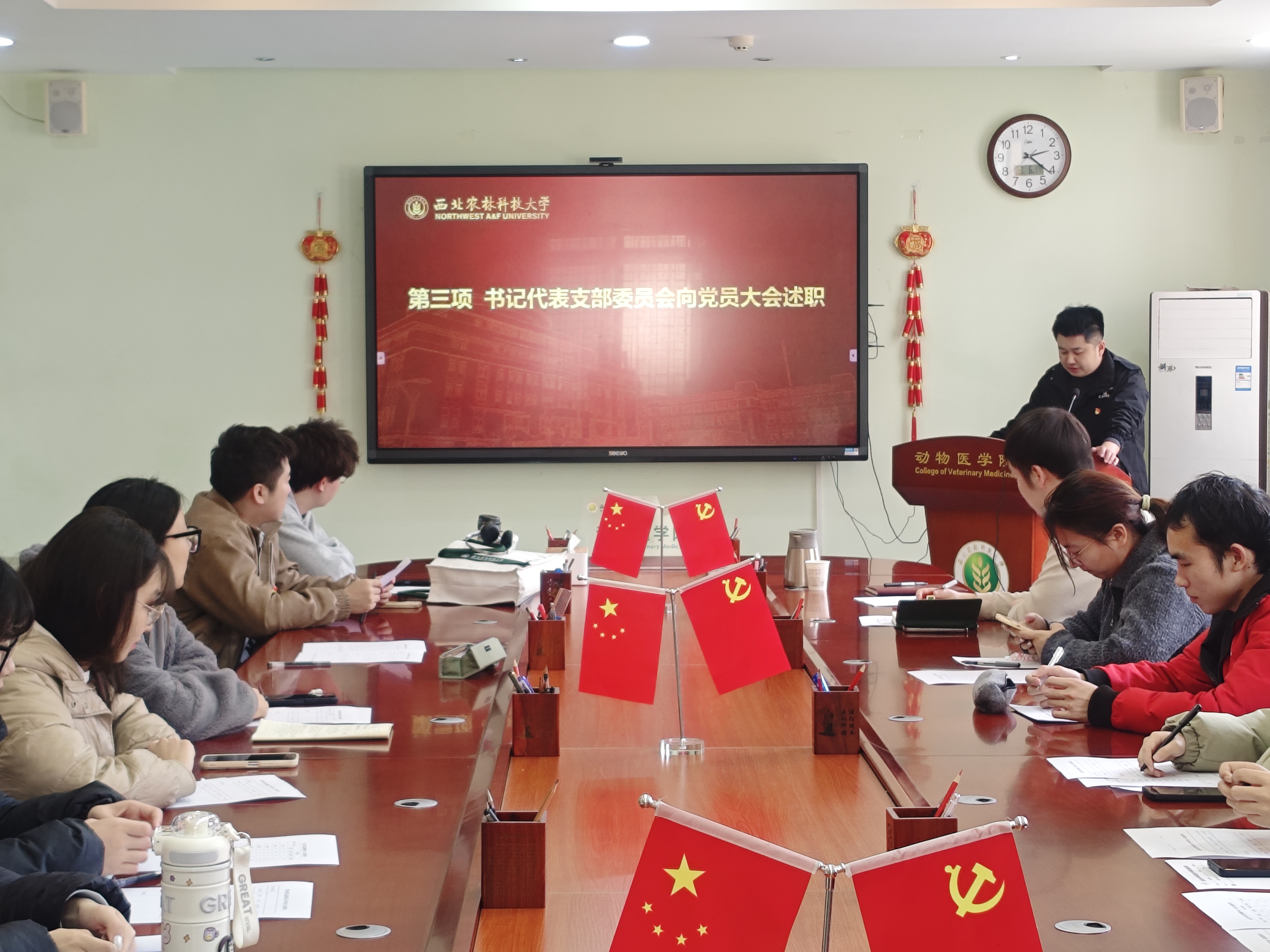 王凤进老师作书记代表支部委员会向党员大会述职