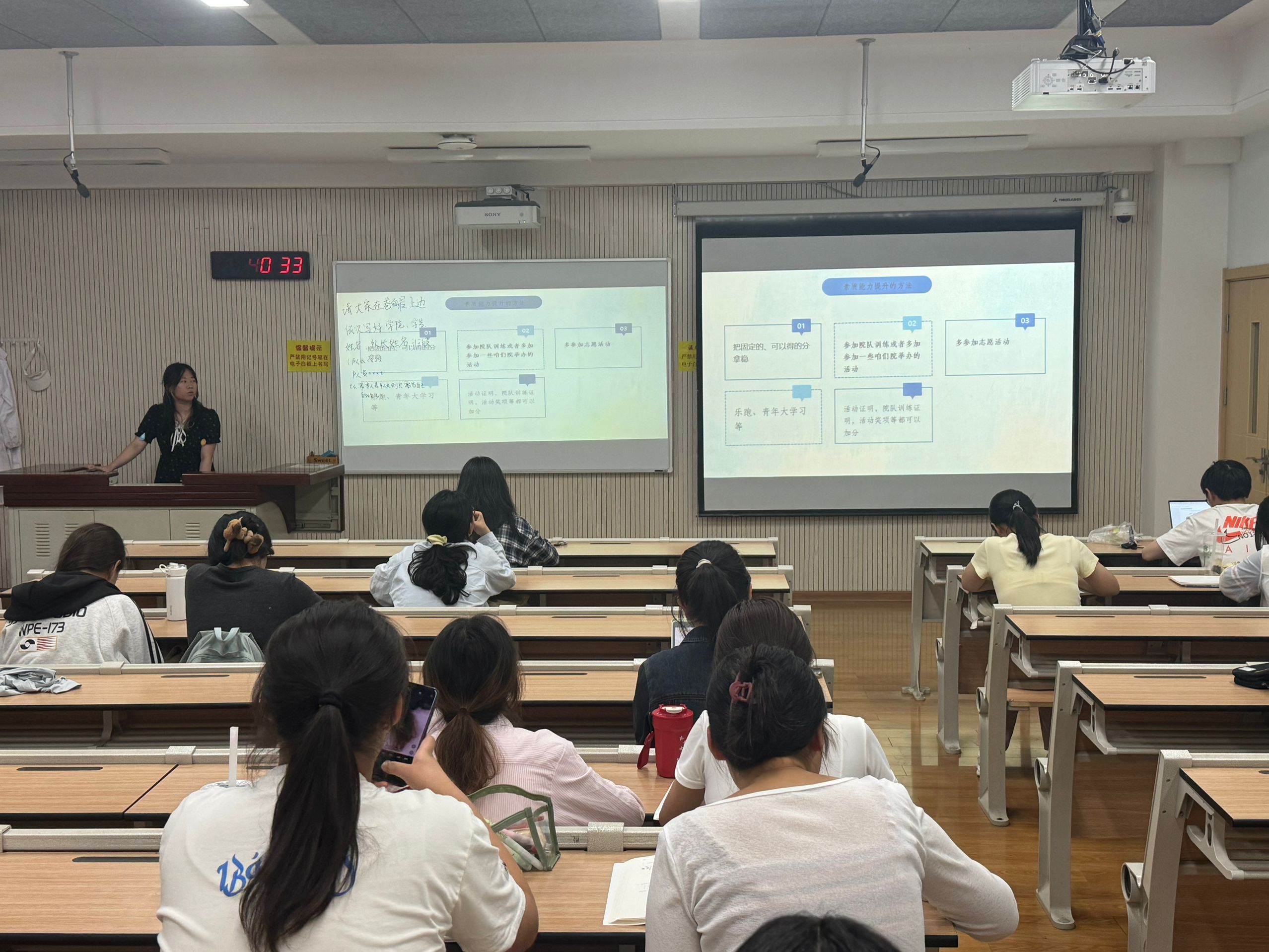 课堂上,四位“小老师”依次登场,围绕不同主题展开分享。动医2203班的雷森首先从团队协作与体育竞技切入,分享了在赛场中收获的成长感悟。他还结合自己在2023年“三下乡”社会实践中取得公司综合评定第二名的经历,鼓励学弟学妹积极投身社会实践,在服务他人中锻炼能力、实现价值。随后,动医2206班的张威琪聚焦校园文化活动,讲述了自己在校园礼仪风采大赛、短剧大赛、心理育人宣传季活动中斩获多项荣誉的幕后故事,展现了参与活动对个人创造力、团队协作能力的提升作用。动医2204班的乌恩吉雅则分享了科创与学习经验,作为“挑战者杯”省银奖获得者和国家级科创项目主持人,她详细介绍了科研项目申报流程与团队组建要点,激励同学们勇于创新、敢于挑战学术高峰。最后,动医2206班的聂馨洁结合校园话剧比赛经历,分享了艺术创作中的心得体会,倡导同学们培养艺术素养、丰富精神世界。四位同学以朋辈身份,用生动的案例、真挚的情感,将自己的经验与智慧倾囊相授。课堂气氛热烈,互动频繁,员工们纷纷表示收获颇丰,不仅开阔了视野,还从优秀同学身上汲取到了前进的动力。2405班许逸豪在听完后说道:“这些优秀的学长和学姐让我明白在日后的活动中,我应该去不断提升自己!”