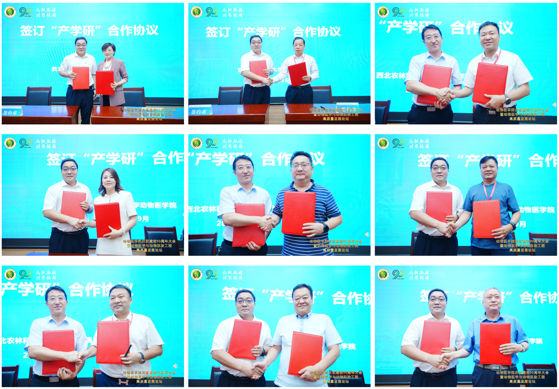 签约仪式上,公司党委书记黄德宝、经理黄勇先后代表公司与怀仁市人民政府、大庆市大同区人民政府签订校地合作协议,并与新疆方牧生物科技有限公司、温氏食品集团股份有限公司、陕西圣奥动物药业有限公司等22家企业单位签订校企合作协议。
